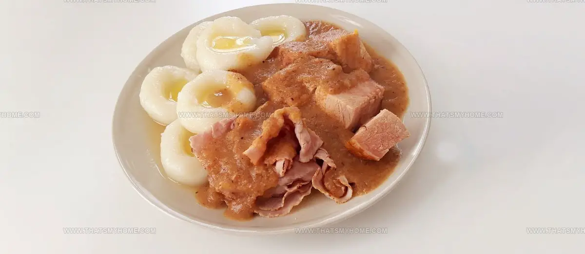 Czech families prepare this classic meal by slow-roasting pork with chopped onions and creating a deeply flavored sauce from meat drippings.