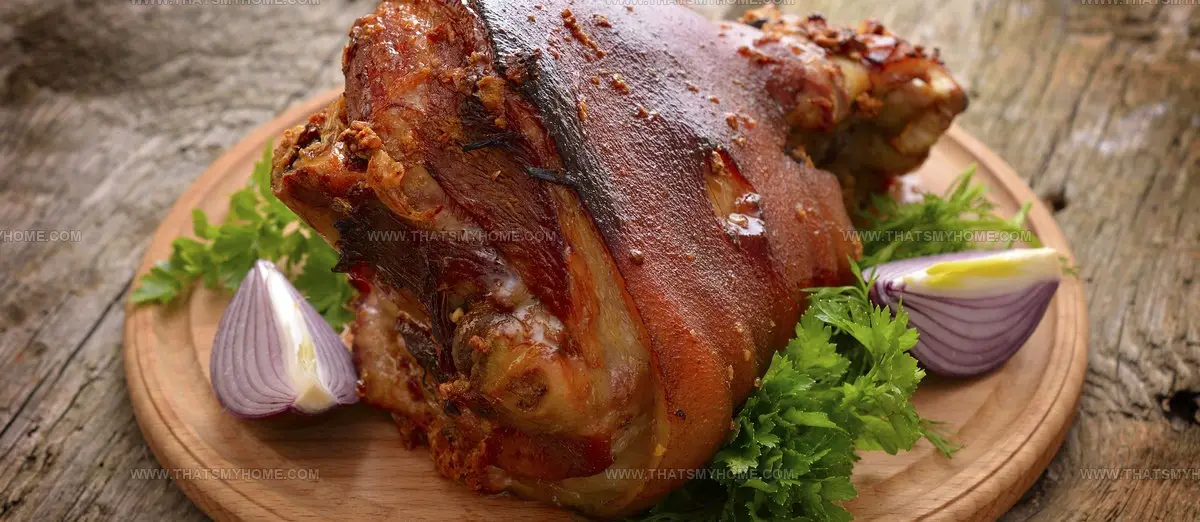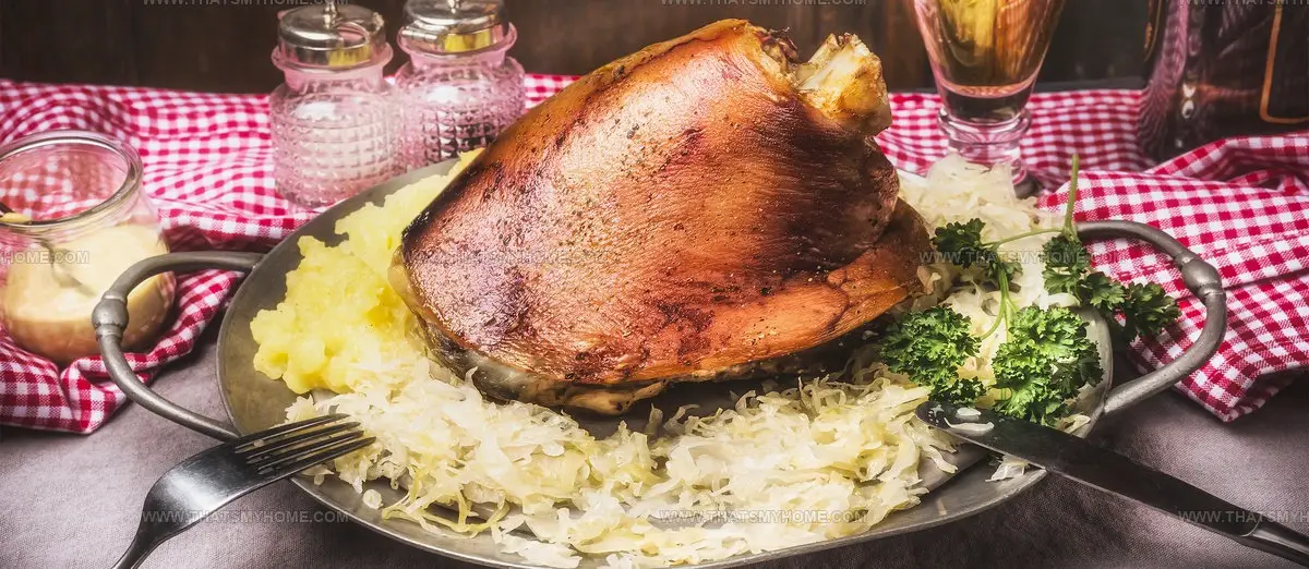 Northern German regions prepare a similar version called Eisbein, which involves curing and boiling the meat instead of roasting.