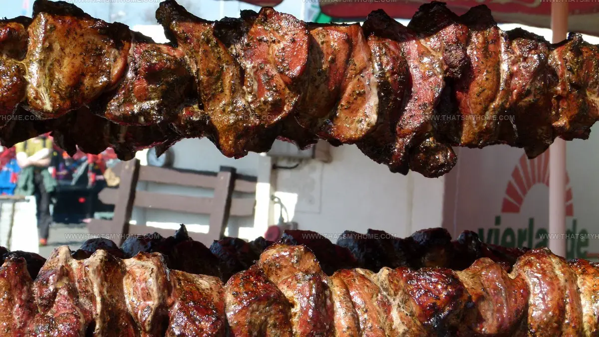 Saarland's beloved barbecue specialty uses neck cuts or alternative pork cuts marinated in a robust blend of herbs and spices.