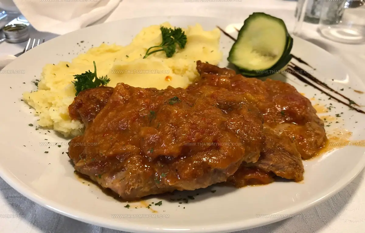 Croatian chefs meticulously marinate pork cutlets for an entire day in rich red wine and select spices, ensuring deep flavor penetration.