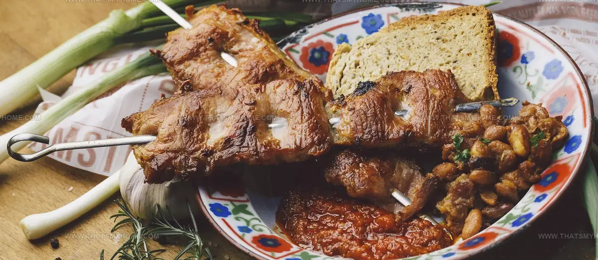 Locals serve this simple dish with sharp raw onions and ajvar, a robust roasted eggplant and pepper relish that complements the meat's smoky profile.