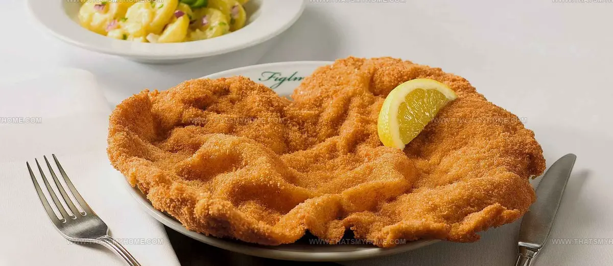Wiener schnitzel Wiener Art embodies Austrian culinary tradition through its crispy, golden-brown pork cutlet breaded and fried to perfection.
