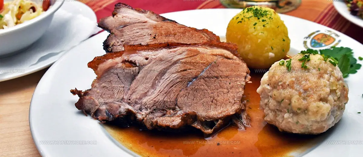 Skilled home cooks typically serve schweinebraten with classic side dishes including homemade gravy, semmelknodel (bread dumplings), or potato dumplings.