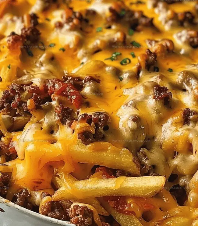 Cheeseburger French Fry Casserole delivers pure comfort with layered ground beef, crispy fries, and melted cheese. Home cooks will devour this hearty midwestern dish that combines classic burger flavors in a convenient, crowd-pleasing baked format.