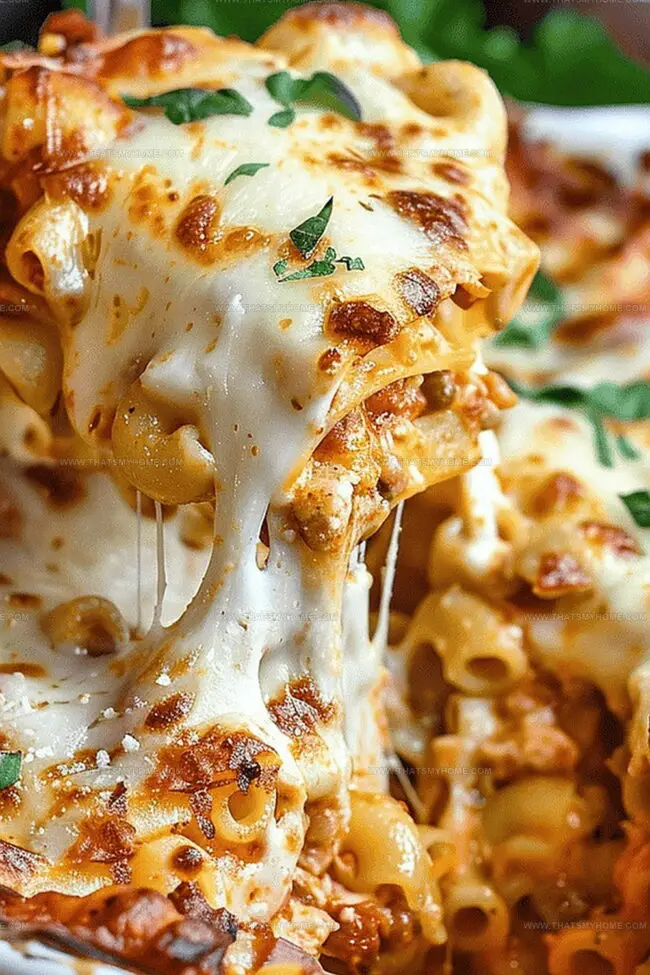 After a brief resting period, slice into this incredible fusion of mac and cheese lasagna, revealing layers of flavor that blend classic comfort foods into one extraordinary dish.