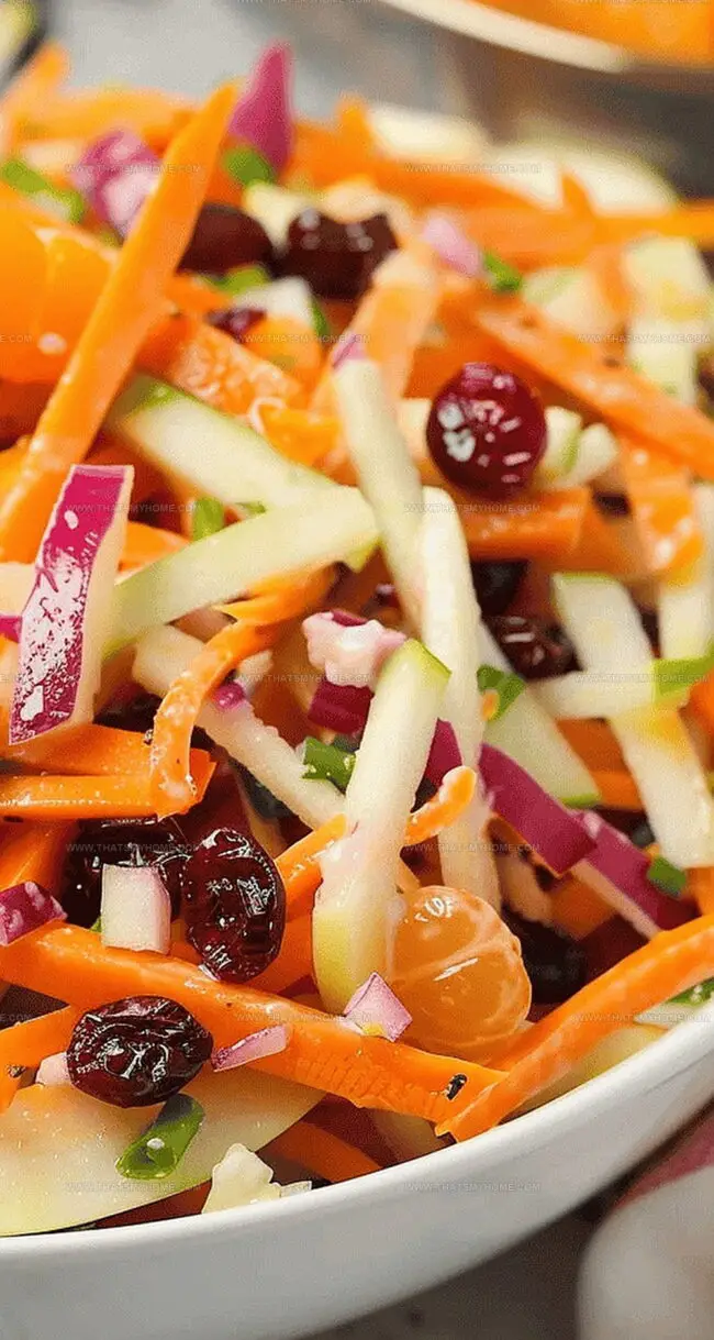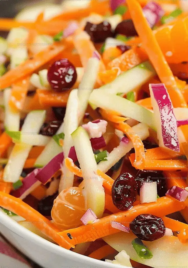 - Mixing Base: Combine julienned carrots, diced yellow onion, and dried sweetened cranberries in a spacious mixing bowl, creating a vibrant foundation for the salad.