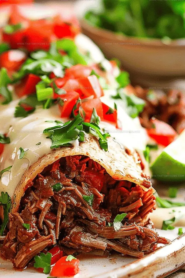 Select large, soft flour tortillas that can cradle your delectable beef filling. Spread a generous layer of tender meat across the center, creating a hearty and inviting base.