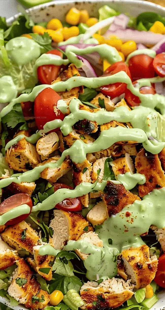 - Generously drizzle the cilantro lime dressing over the salad, allowing it to cascade and coat each ingredient. Serve immediately with crispy tortilla chips, accompanied by zesty salsa and cool sour cream for an optional flavor enhancement.