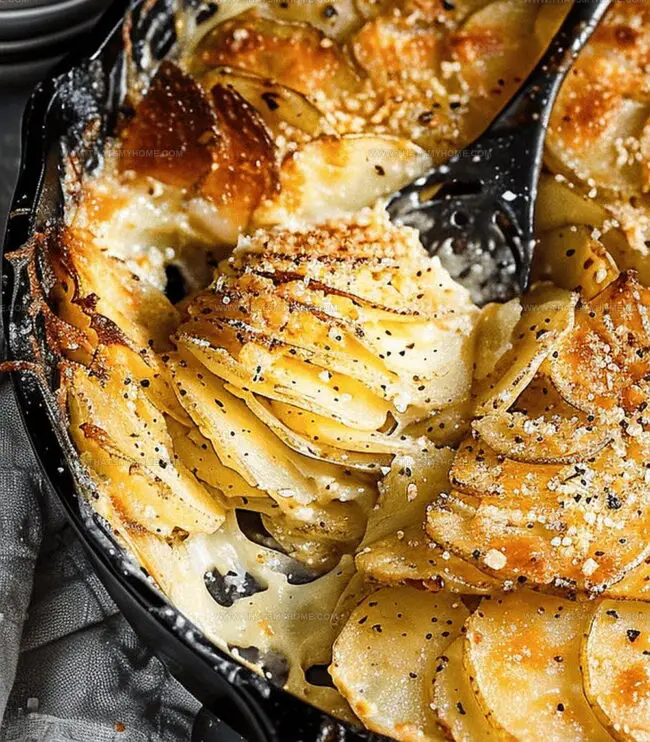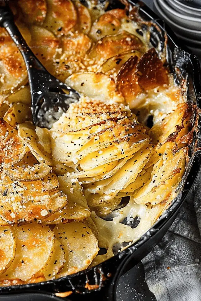 Sprinkle a mix of Gruyere and Parmesan on top, then broil until the surface becomes a crispy, golden landscape of melted cheese and herb-kissed potato perfection.