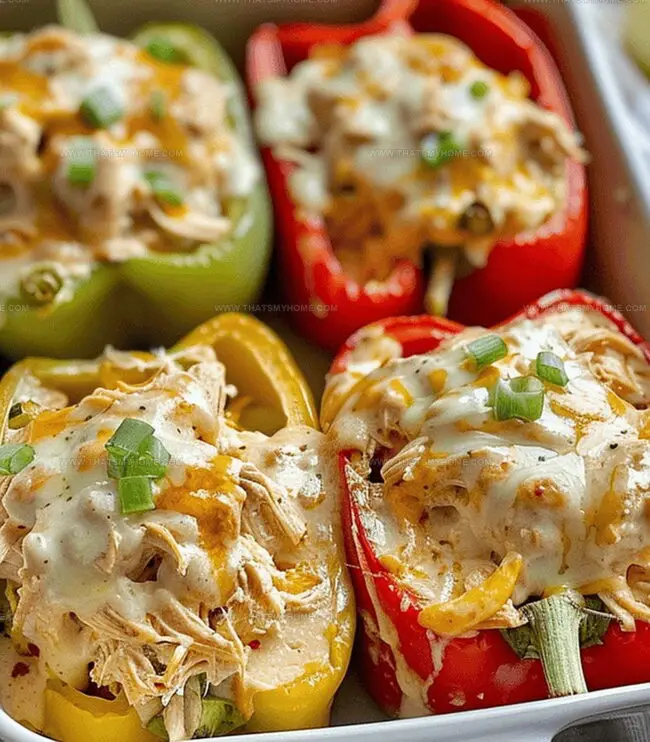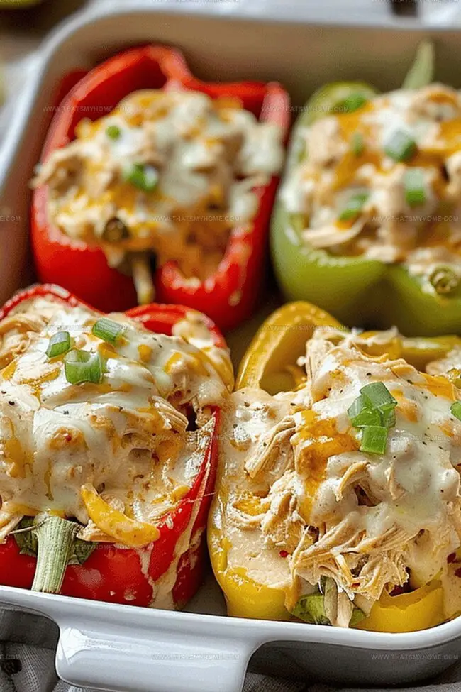 - Assembly and Topping: Arrange pepper halves in a baking dish, generously fill each cavity with the chicken mixture, and crown with remaining cheese for a golden, melted finish.