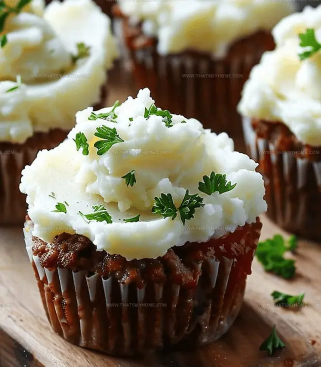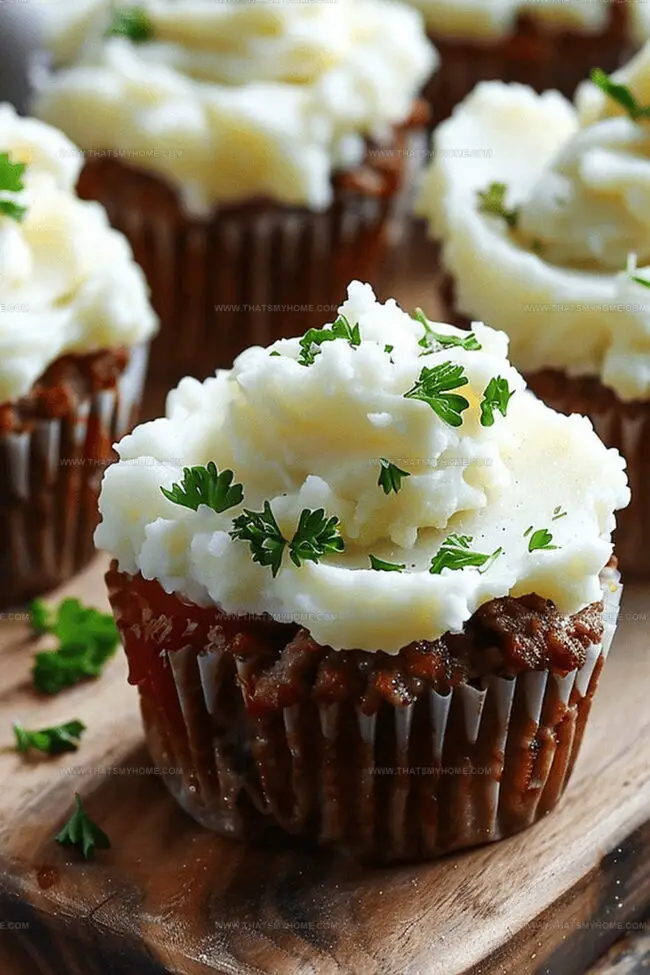 Elegant Finishing Carefully pipe creamy potato topping onto each meat base, creating a whimsical cupcake-style appearance. Sprinkle fresh parsley for a touch of vibrant color and herbal brightness.