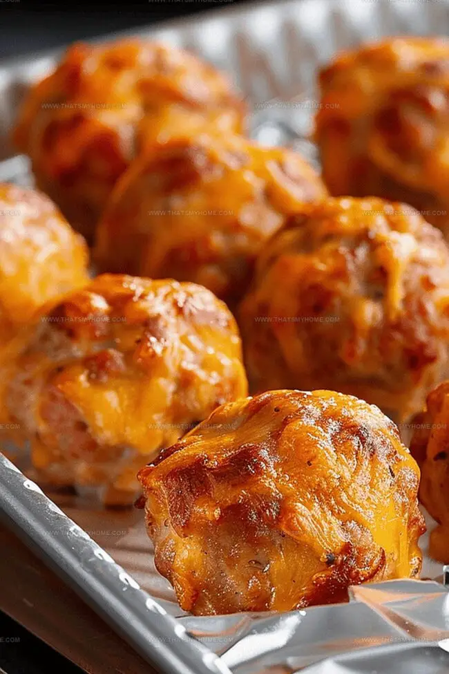 Resting and Serving: Allow sausage balls to settle for 3-4 minutes after removing from the oven, then plate as a tantalizing appetizer or snack, potentially paired with a complementary dipping sauce to elevate the flavor profile.