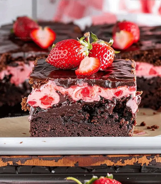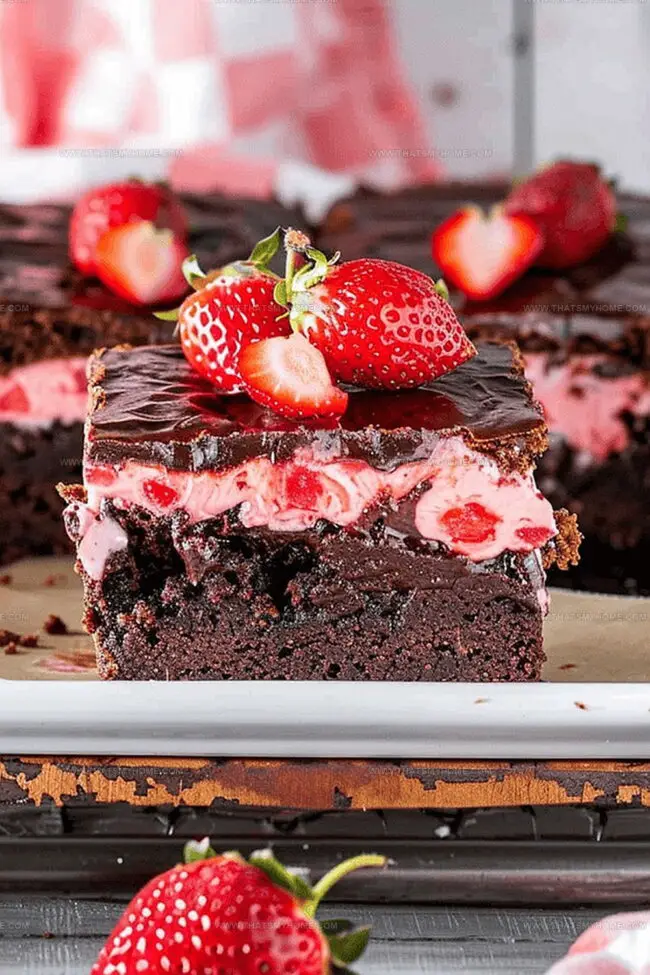 Decadent chocolate swirls meet vibrant strawberry brownies recipe magic in this mouthwatering dessert that promises pure indulgence.