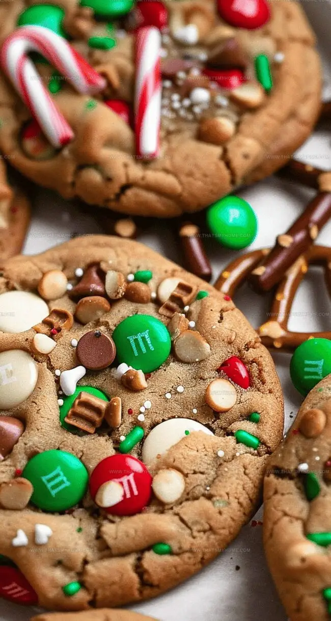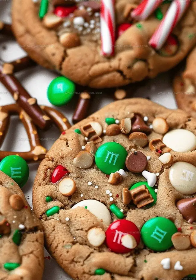 - Dough Formation: Delicately fold dry ingredients into wet mixture, stirring minimally to prevent overmixing. Gently fold in M&M’s, white chocolate chips, pretzels, crushed potato chips, and holiday sprinkles, distributing ingredients evenly throughout the dough.