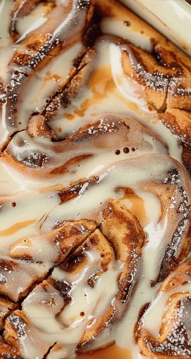 Swirls of cinnamon peek through the golden surface, hinting at the decadence waiting beneath.