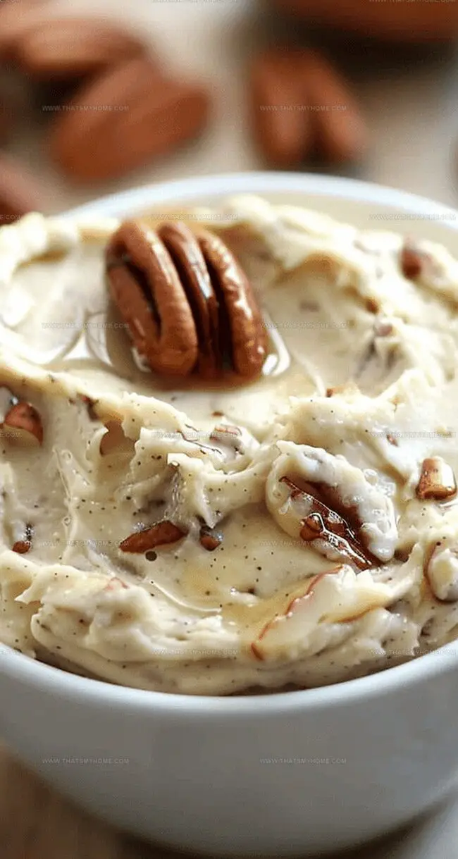 Rich, creamy textures mingle with toasted pecans in a luxurious spread that melts on your tongue.