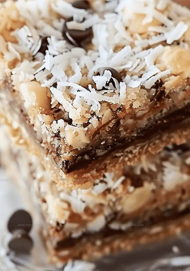 - Cooling and Serving: Allow bars to cool completely on a wire rack. Once at room temperature, slice into 2-inch square portions, revealing the delectable layers of coconut and chocolate.