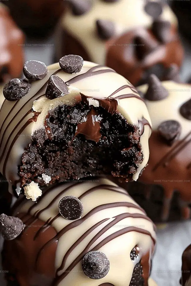 Drizzle with white chocolate for elegant contrast and sprinkle extra mini chocolate chips across the surface. Pop the tray into the refrigerator, letting the bombs set into a firm, indulgent dessert perfect for sharing or secret snacking.