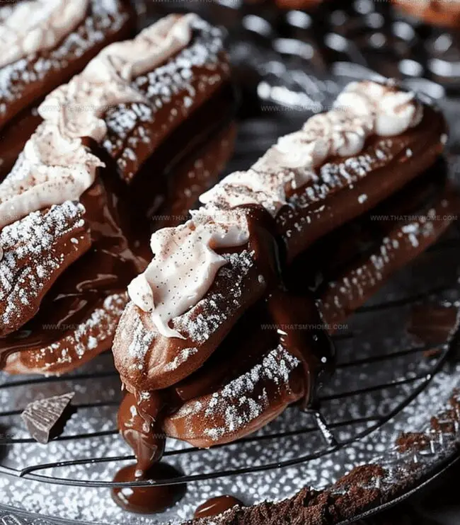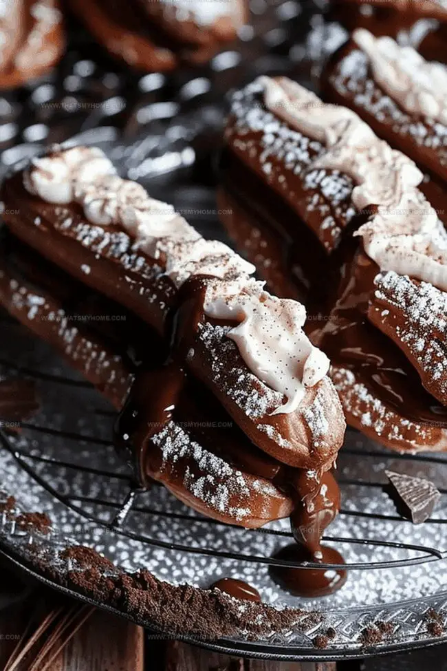 - Assembly Artistry: Slice cooled eclairs horizontally, dip tops in ganache, fill bottoms with chocolate whipped cream, and reunite the halves to create decadent triple chocolate eclairs.