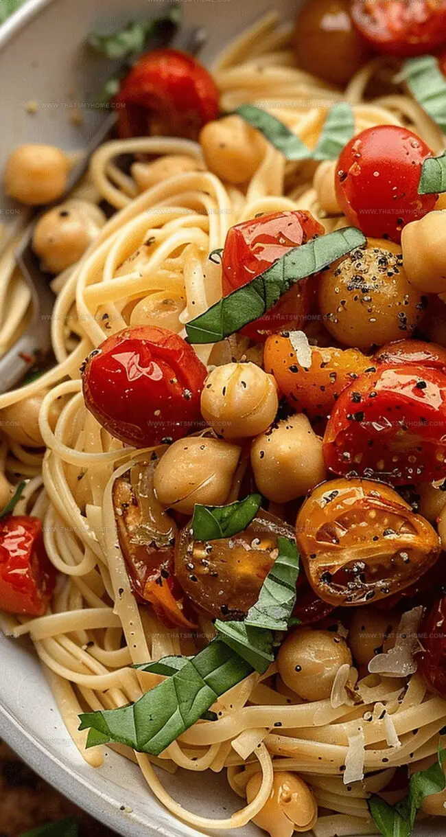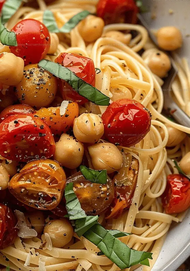 Mediterranean pasta perfection comes alive with slow-roasted tomatoes and chickpeas, creating a robust, herb-infused dish that transports taste buds to sunny coastal kitchens. Rustic ingredients meld together, offering you a simple yet deeply satisfying culinary experience brimming with Mediterranean comfort.