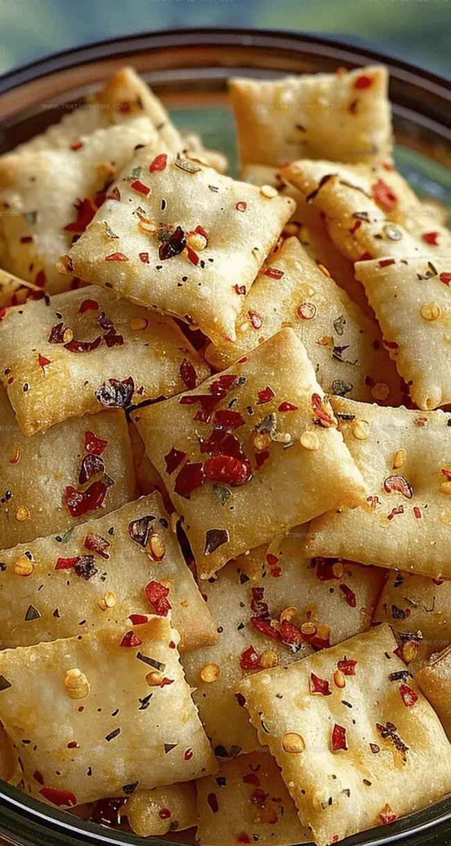 - Once achieving a light golden color and desired crunchiness, remove the baking sheet from the oven and allow the spicy crackers to cool completely before serving.