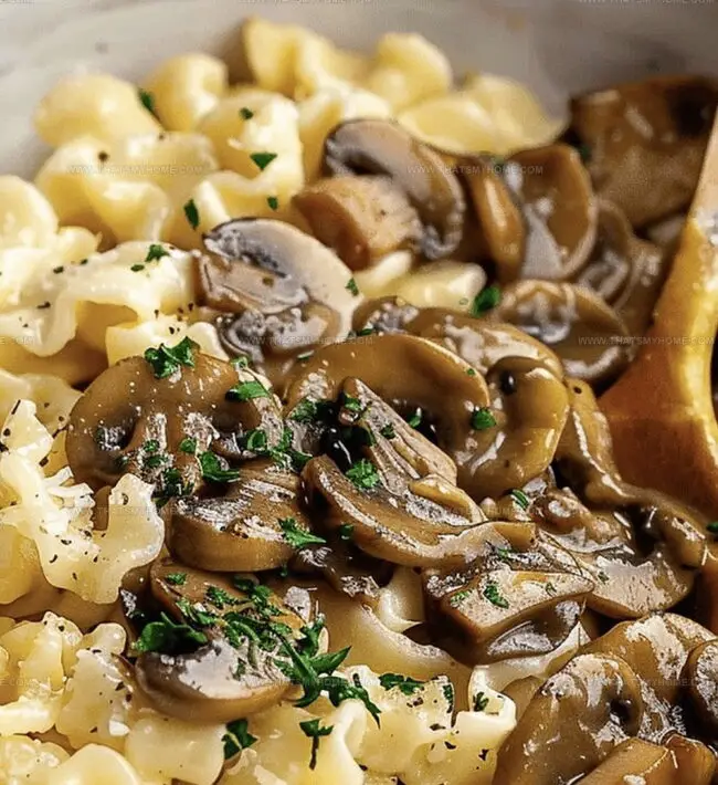 mushroom sauce elevates the humble noodles, creating a harmonious blend of robust umami and tender pasta.