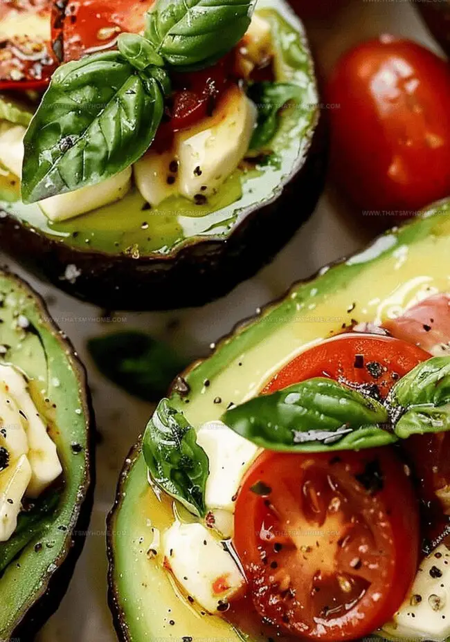 - Generously spoon the Caprese-style mixture into each avocado half, allowing the ingredients to mound slightly above the avocado’s natural curve.