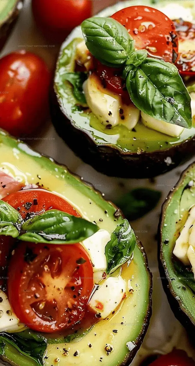 - Artfully drizzle aged balsamic glaze across the stuffed avocados, creating an elegant zigzag pattern that enhances both visual appeal and flavor complexity.