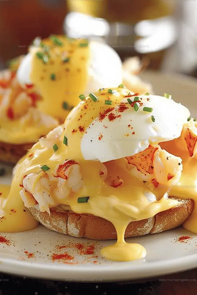 - Plating and Garnishing: Arrange toasted muffins on serving plates, layer with shredded bay lobster meat. Transfer poached eggs using a slotted spoon, placing one atop the lobster on each muffin half. Drizzle spicy Cajun hollandaise generously over eggs.