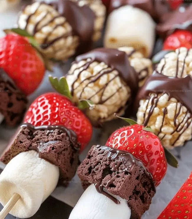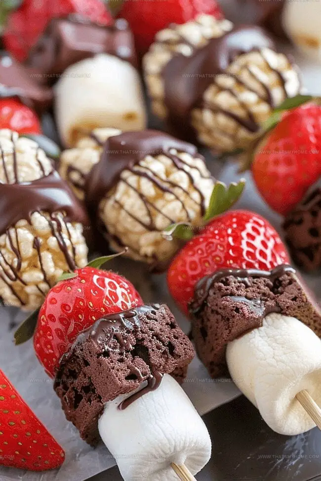 - Skewer Assembly: Thread wooden skewers methodically, positioning strawberries at both ends to securely hold Rice Krispies Treats, brownie bites, and additional components.