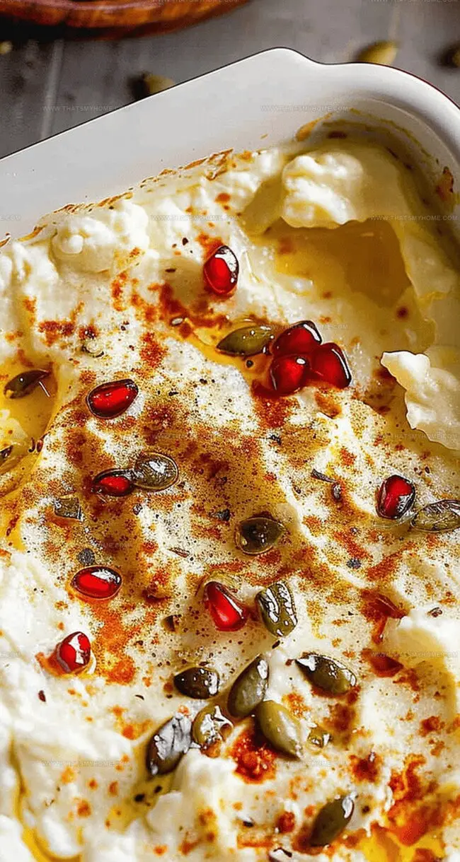 - Sprinkle a generous handful of roughly chopped pistachios and vibrant pomegranate seeds over the top for color, texture, and added flavor complexity.